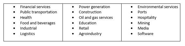 The partners have participated in M&A and Financing transactions worth more than USD 4.0 billion over a diverse set of sectors, including: